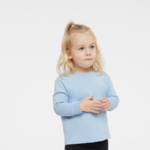 Rabbit Skins Toddler 5.5 Ounce Long Sleeve Cotton Jersey T-Shirt. Fit: Toddler Unisex. 5.5 oz. 100% cotton jersey (Ash is 99/1; Heather is 90/10 cotton/polyester). Ash and White are sewn with 100% cotton thread. Ribbed collar. Shoulder-to-shoulder self-fabric back neck tape. Double needle bottom hem. Side seam construction. EasyTear label. CPSIA compliant tracking label in side seam. Ribbed cuffs.